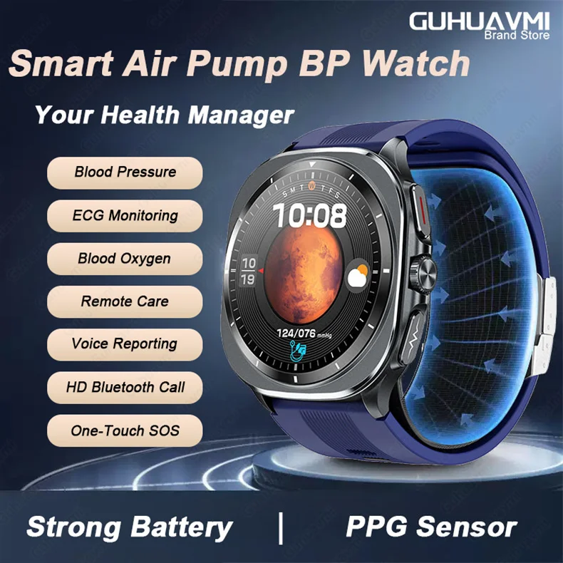 2025 New Health track Smartwatch Air Pump Airbag True Blood Pressure Health Measure Smart Watch Men Women Blood oxygen BT Call