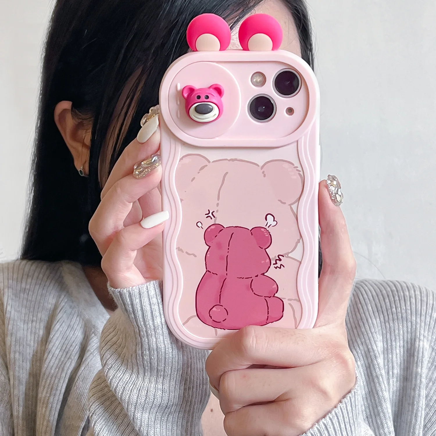 3D Ears Toy Minnie Stitch Winnie Cartoon Sliding Camera Case for iPhone 16 Pro Max 14 Plus 15 X XS XR 7 11 12 13 Wave Phone Capa