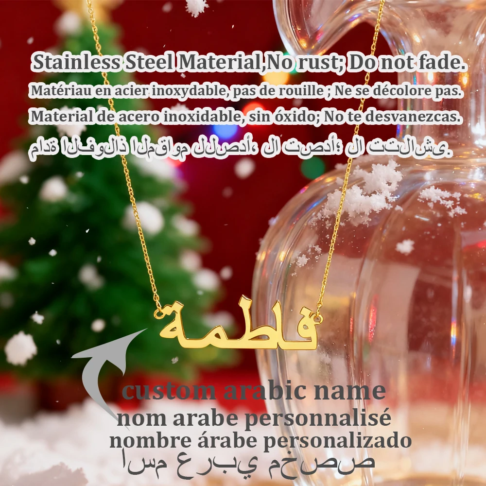 Personalized Arabic Name Necklace for Women Men Custom Arabic Stainless Steel Pendant Jewelry Customized Necklace Box Chain Gift