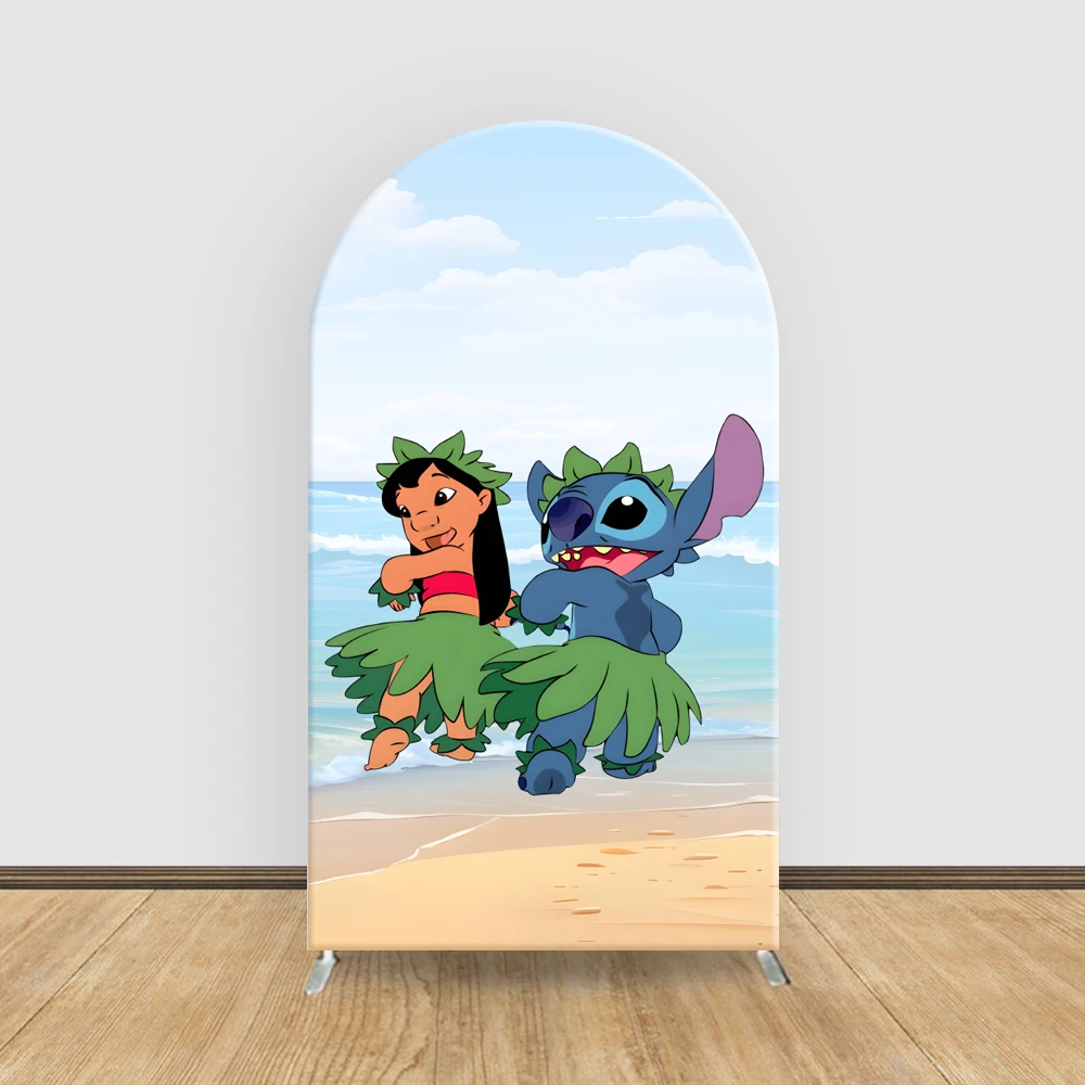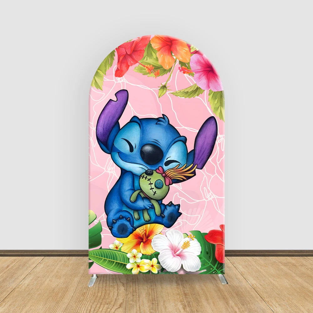 Lilo & Stitch Arch Backdrop Custom Cover Disney Theme Kids Birthday Party Decor for Baby Shower Elastic Photography Background