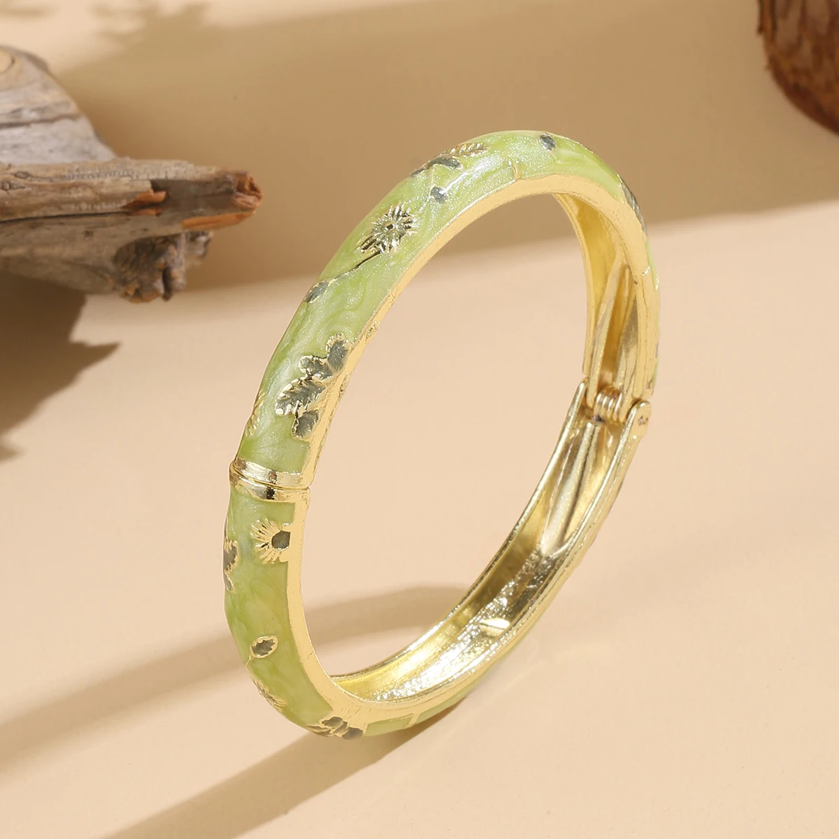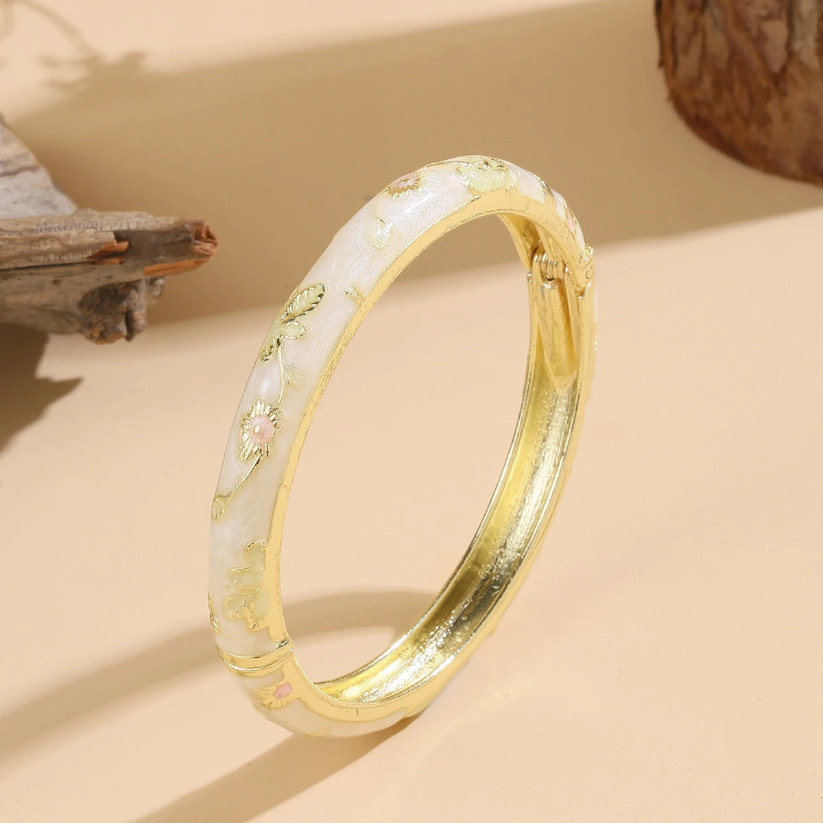 FTCY Vintage Bracelet For Women Small Flower Ethnic Style Cloisonne Bangles Women's Elegant Jewelry Gifts