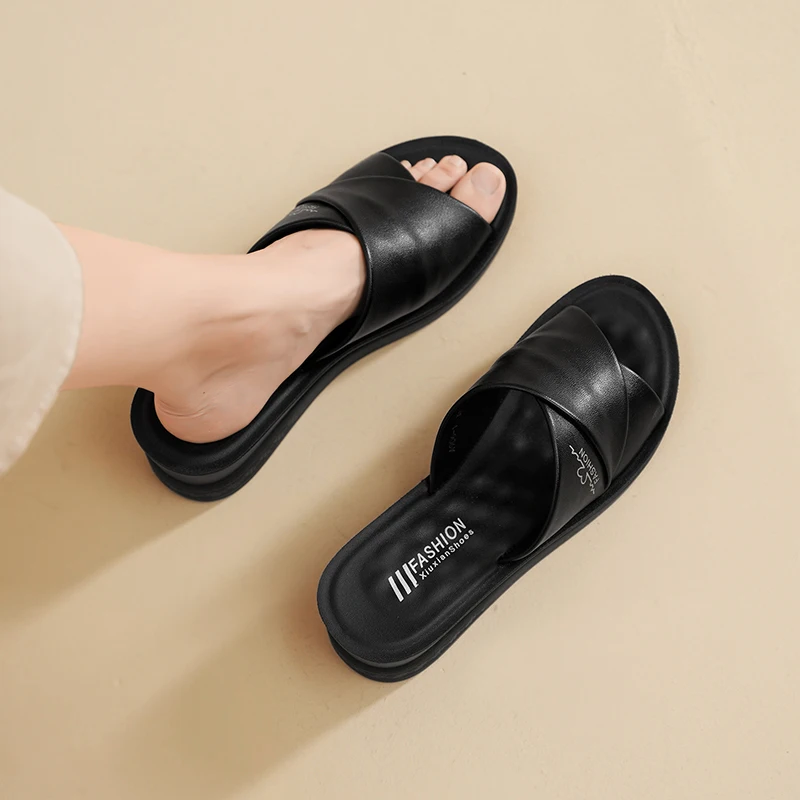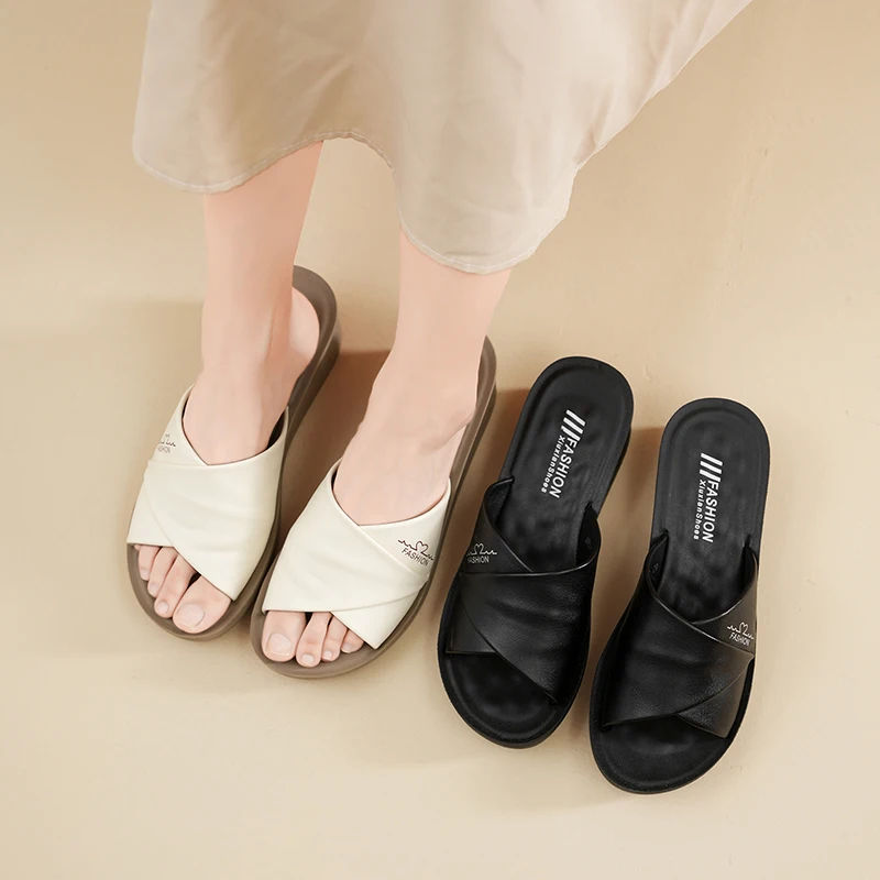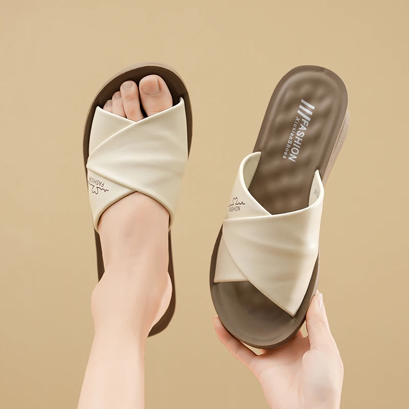New Comfortable Women's Sandals Flat Women's Sandals Summer 2025 Thick Sole Non-slip Breathable Sandals Outdoor Women Slippers