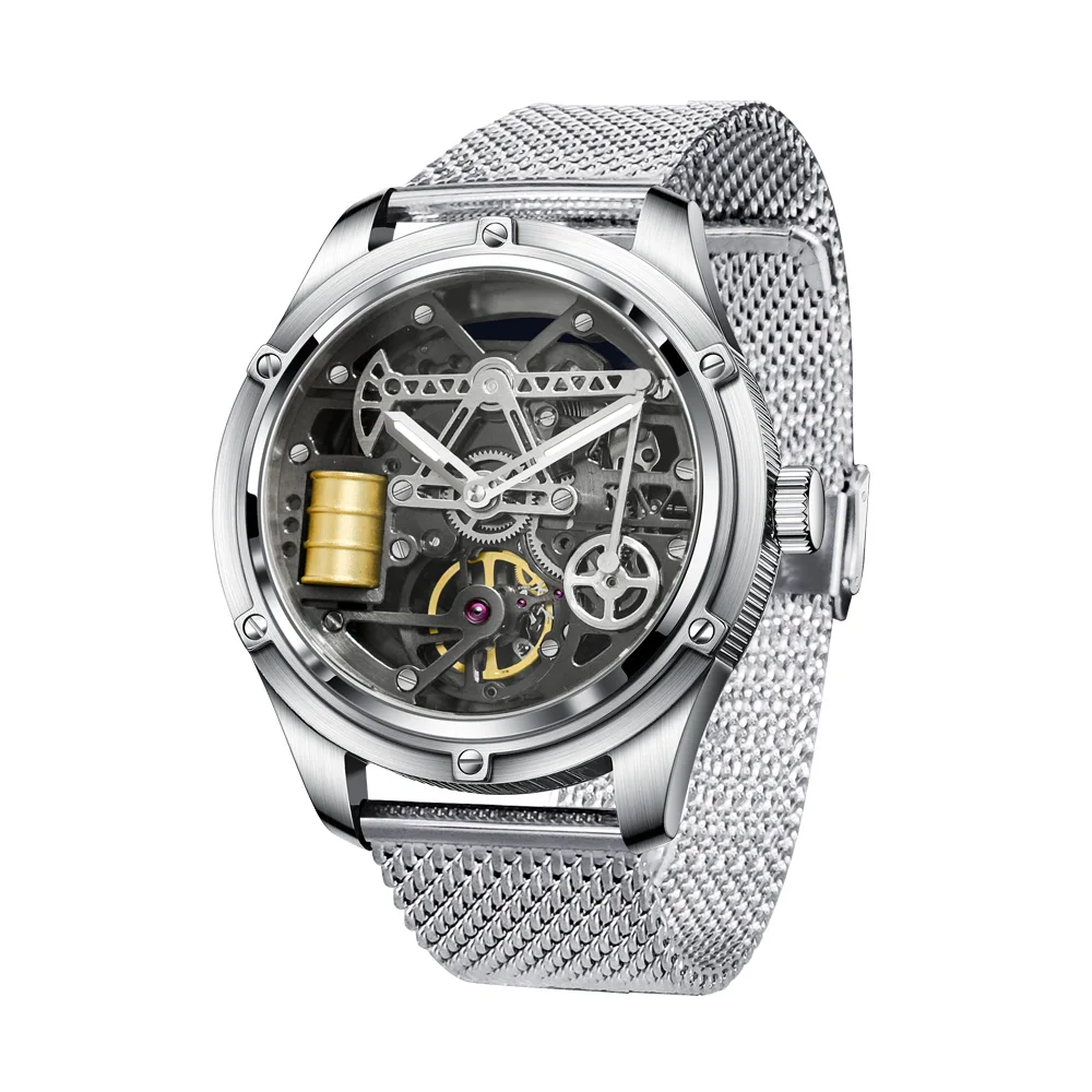 Pindu Men's New Mechanical Watch Leather Sapphire Crystal Commercial Men's Watch Miyota 8215 Automatic Watch 50m Waterproof