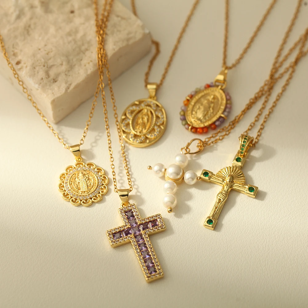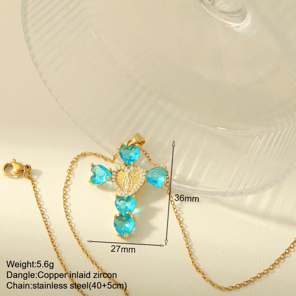 Cross Necklace For Women Bohemian Jesus Virgin Mary Choker Boho Zircon Collars Stainless Steel Long Chain New In Neck Jewelry
