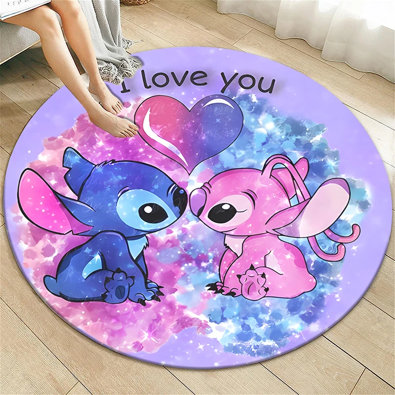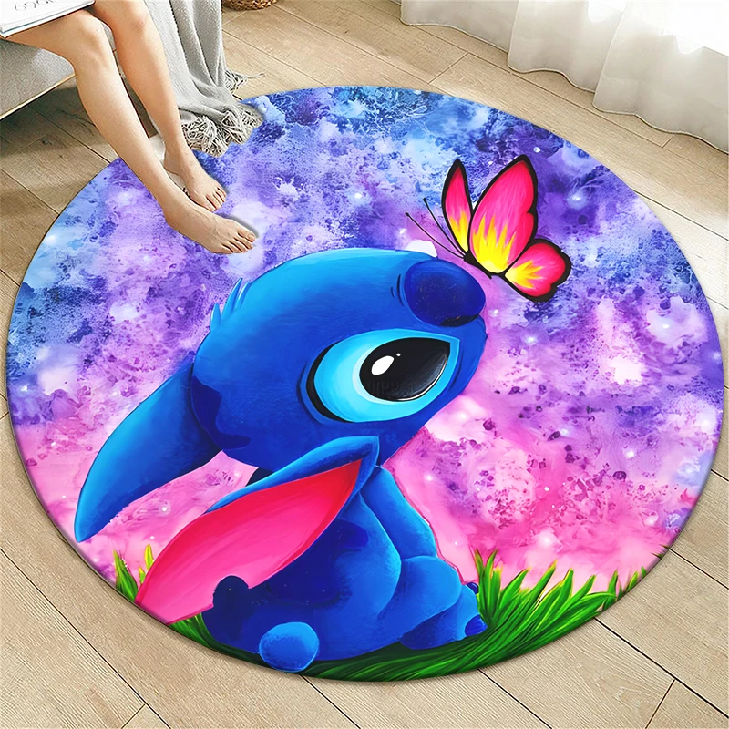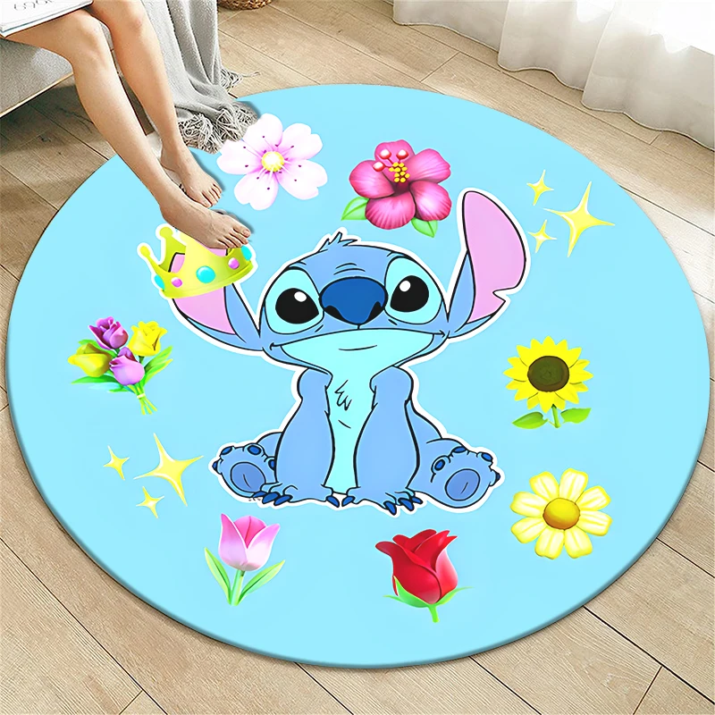 Stitch Cartoon HD Printed Round Carpet for Living Room Rugs Camping Picnic Mats Flannel Anti-Slip Rug Yoga Mat Gifts