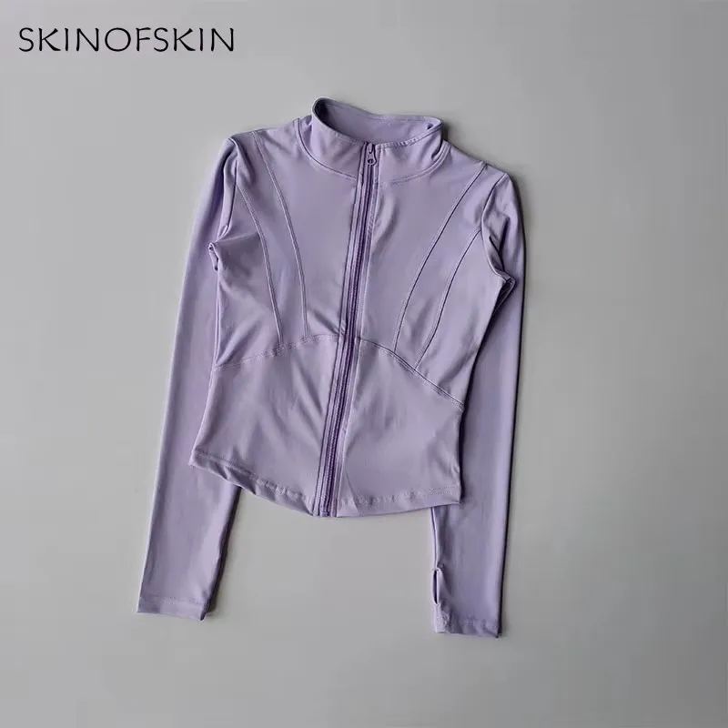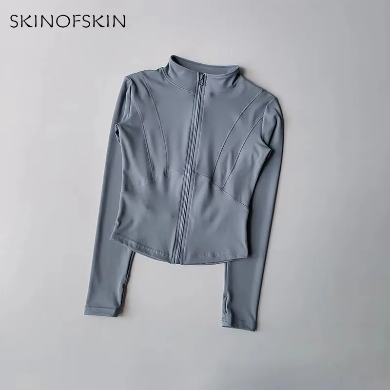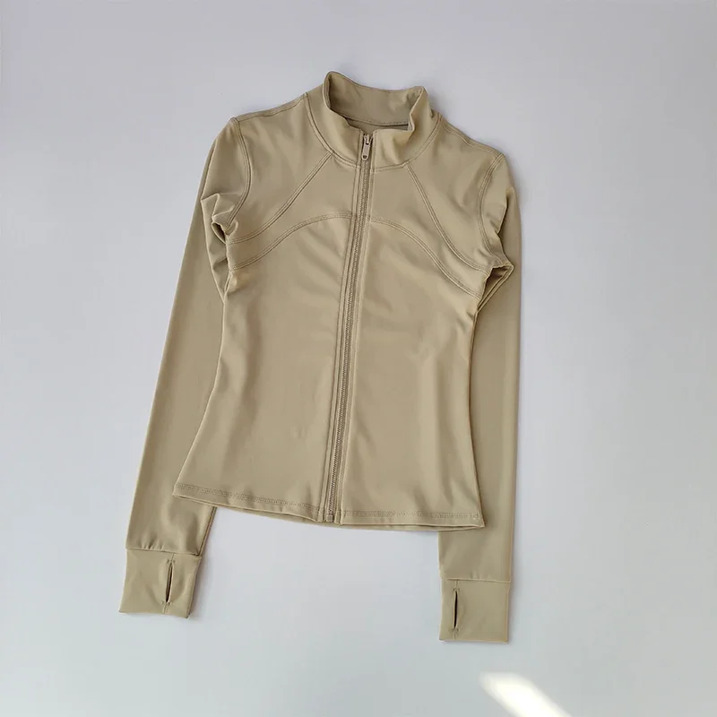Outdoor Sports Long Sleeved Women Slim Yoga Clothes Quick Dry Zipper Cardigan Stand Up Collar Jacket Running Fitness Jacket Top