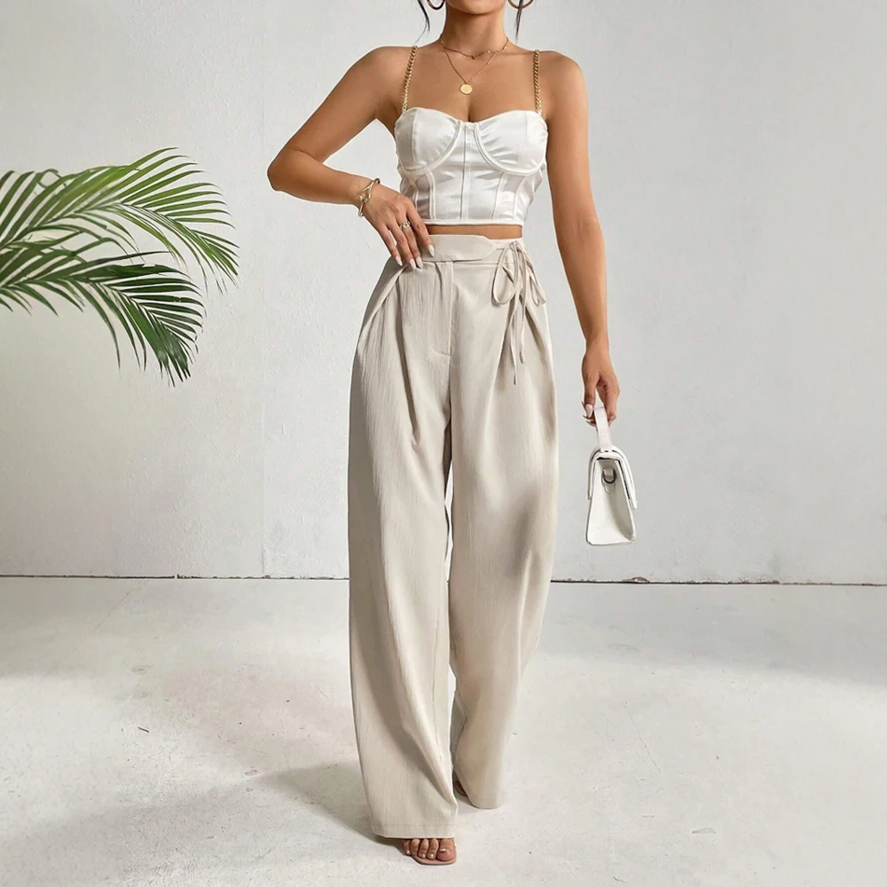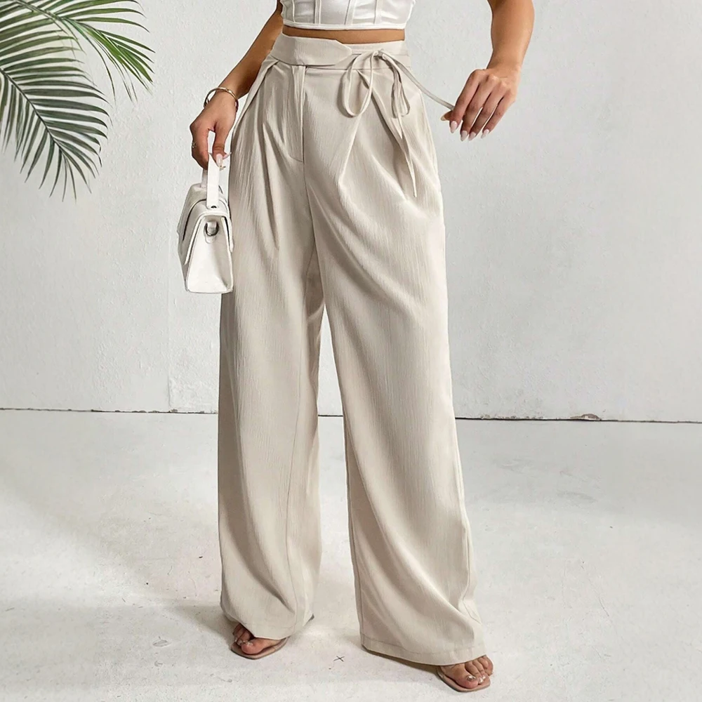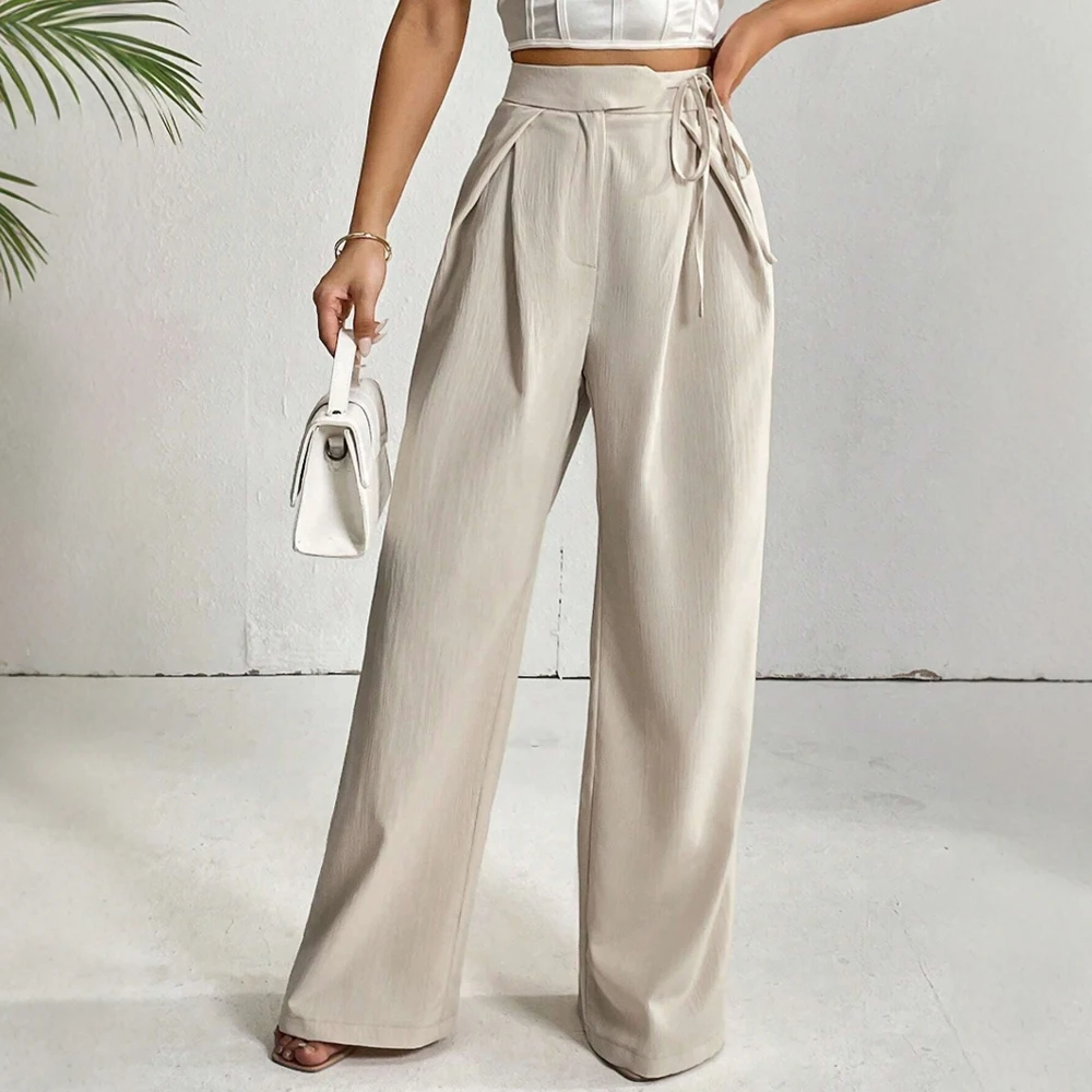 Rafiah Pants Spring Summer Fashion Plain Lace-Up Full Length High Waist Wide Leg Casual Pants