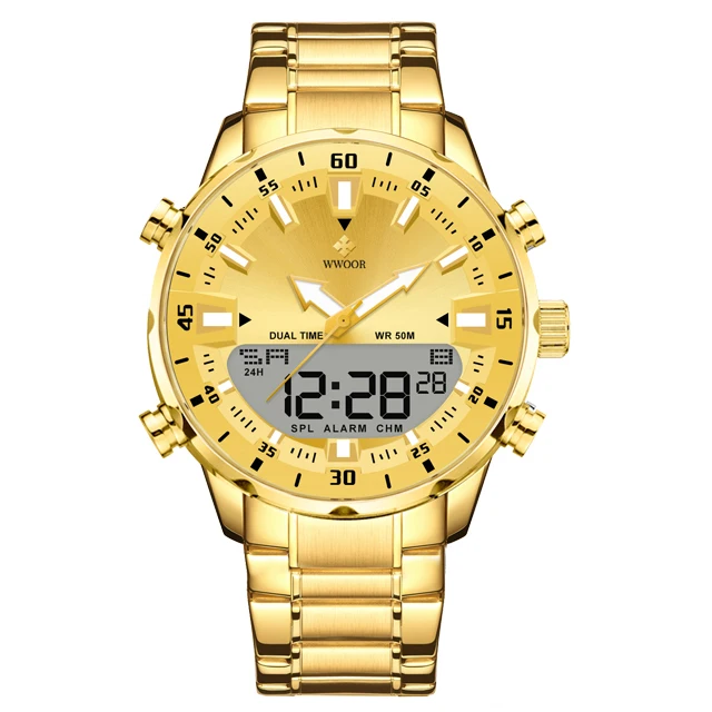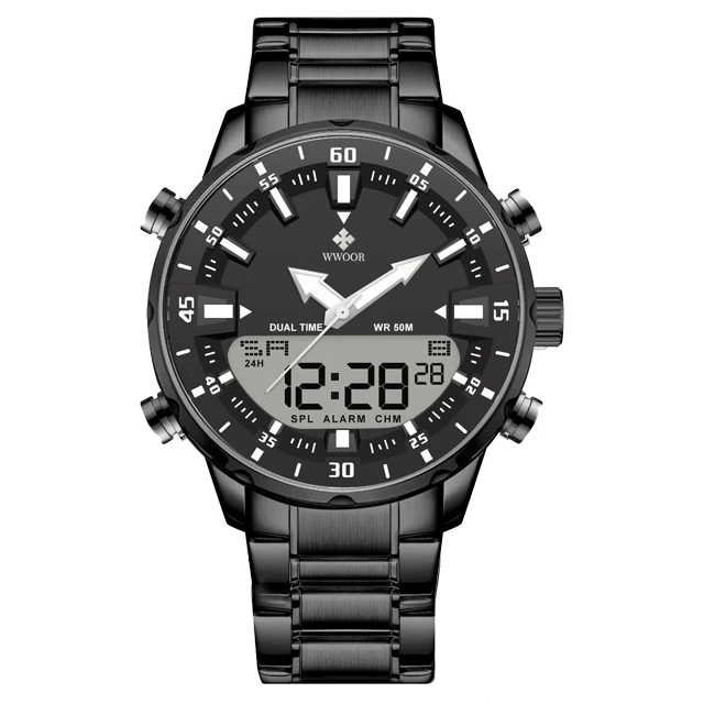 WWOOR New Luxury Digital Watch For Men Sports Big Watches LED Quartz Wristwatch Waterproof Male Clock Military Relogio Masculino
