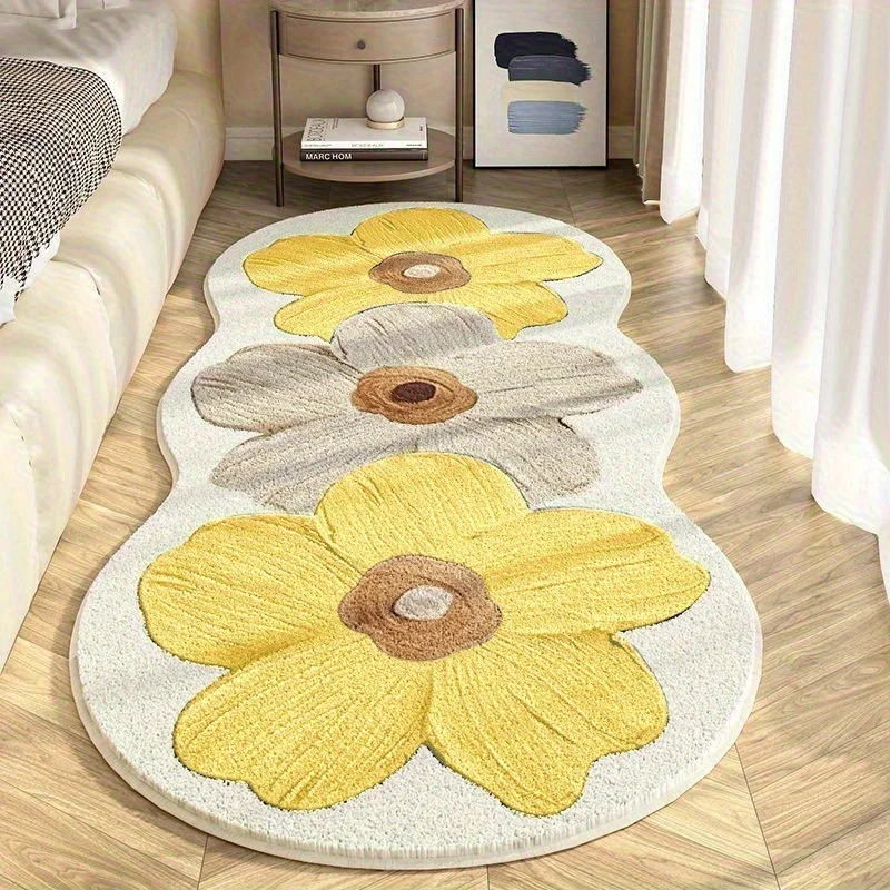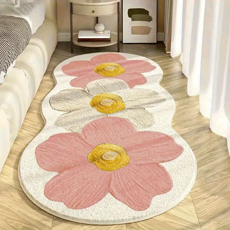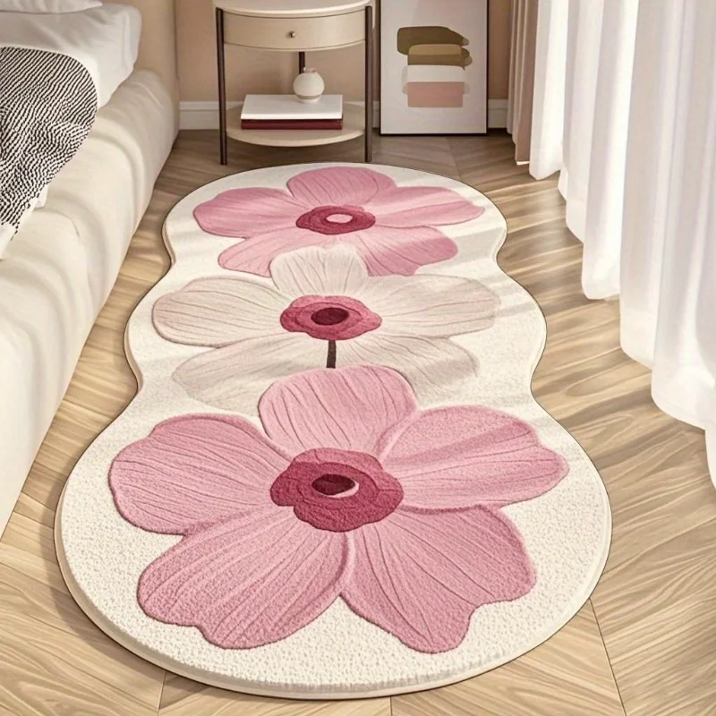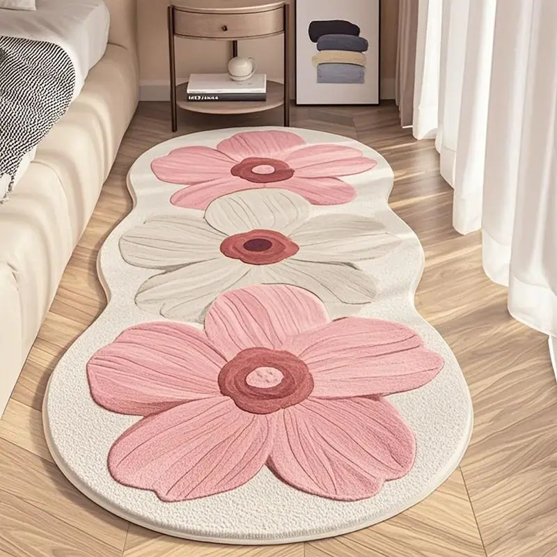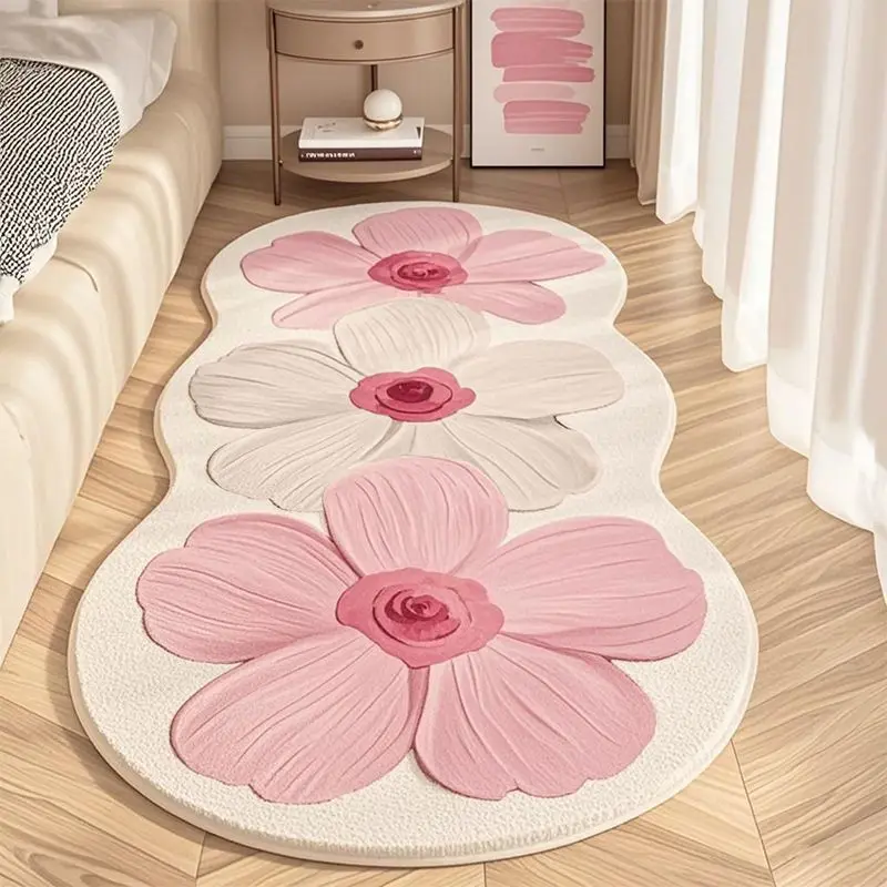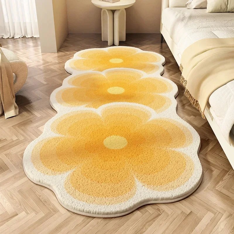 Fluffy Soft Carpets for Living Room Modern Style Bedroom Decor Carpet Flower Pattern Bedside Plush Floor Mat Thick Anti-slip Rug