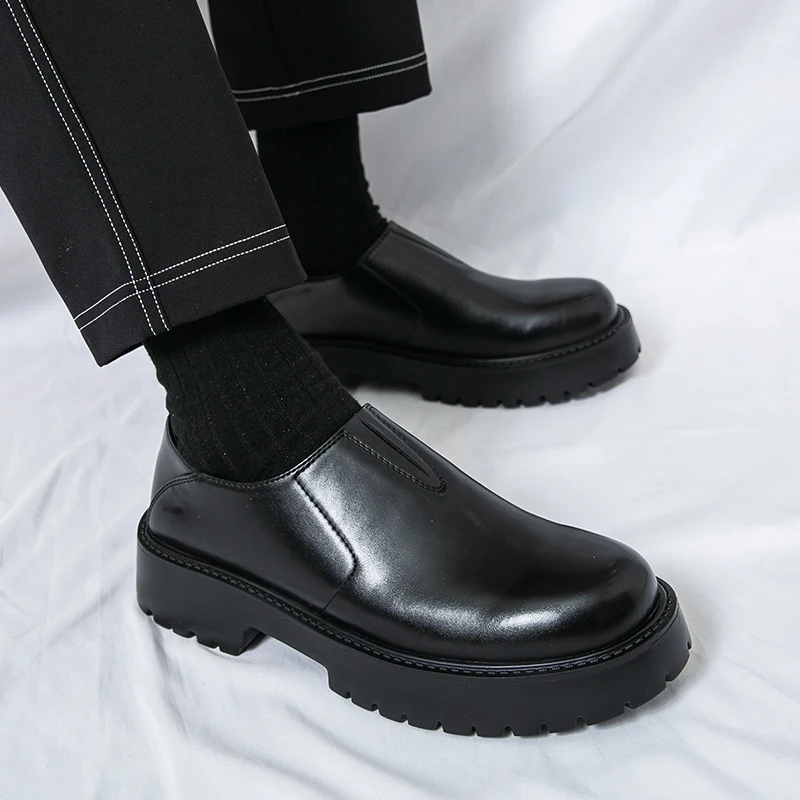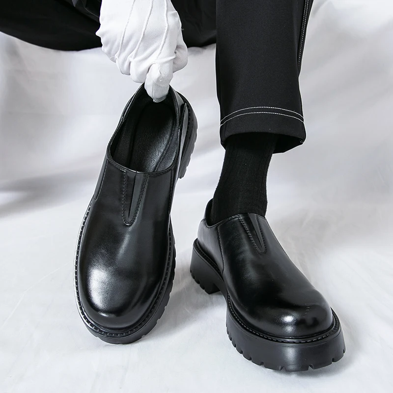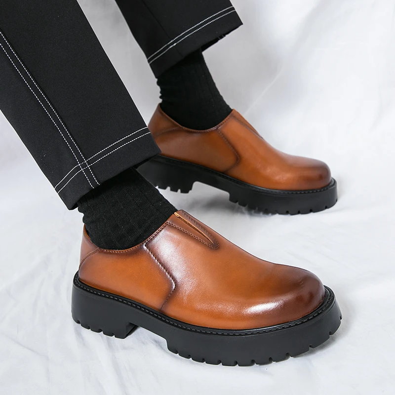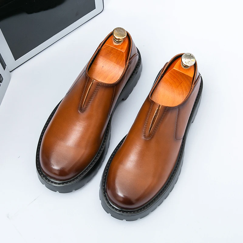 2025 Spring Brand Men's Comfortable Thick Soled Round Toe Loafers Fashion New Men's Breathable Cowhide Casual Leather Shoes