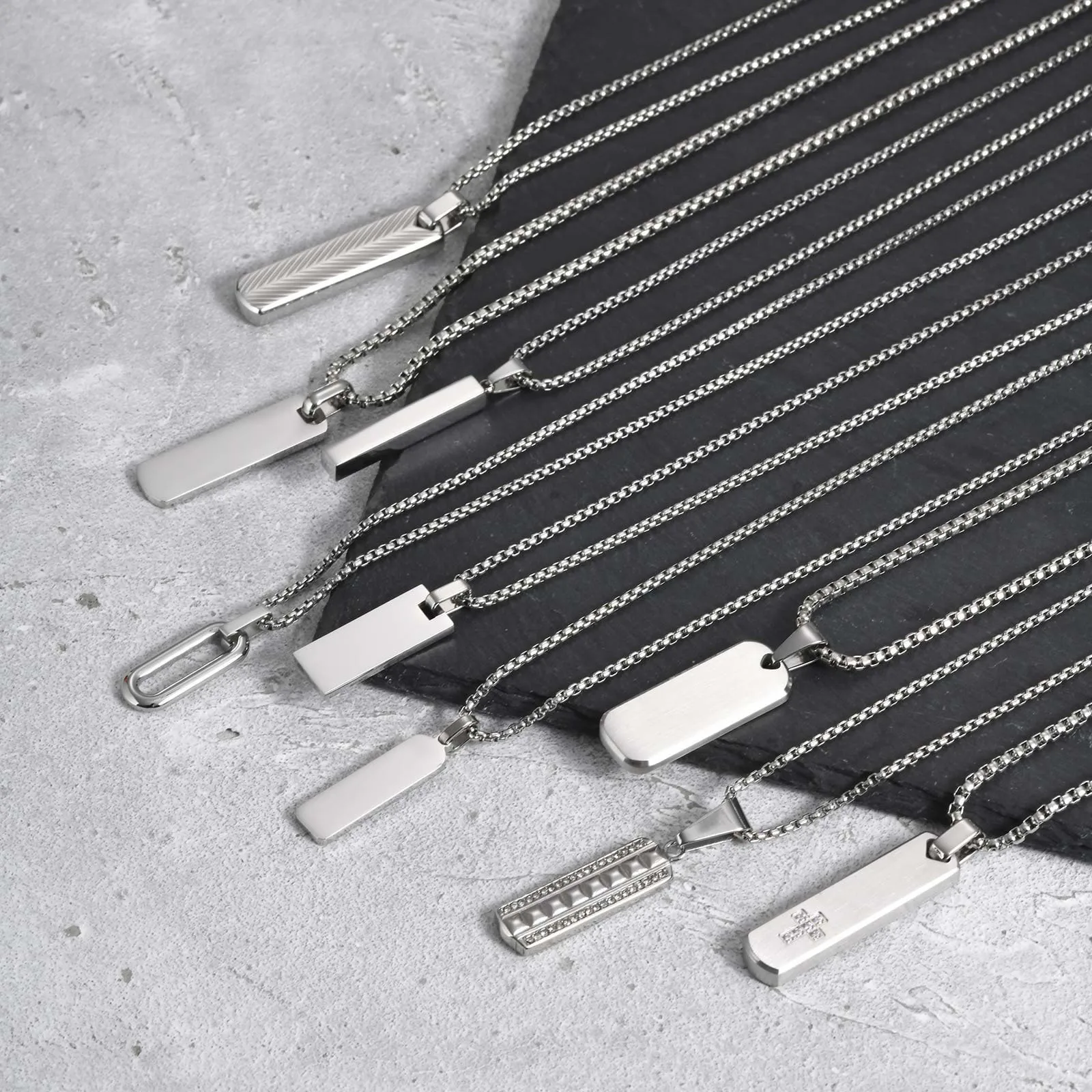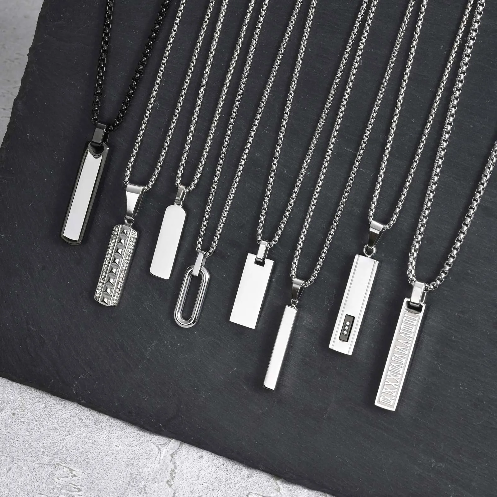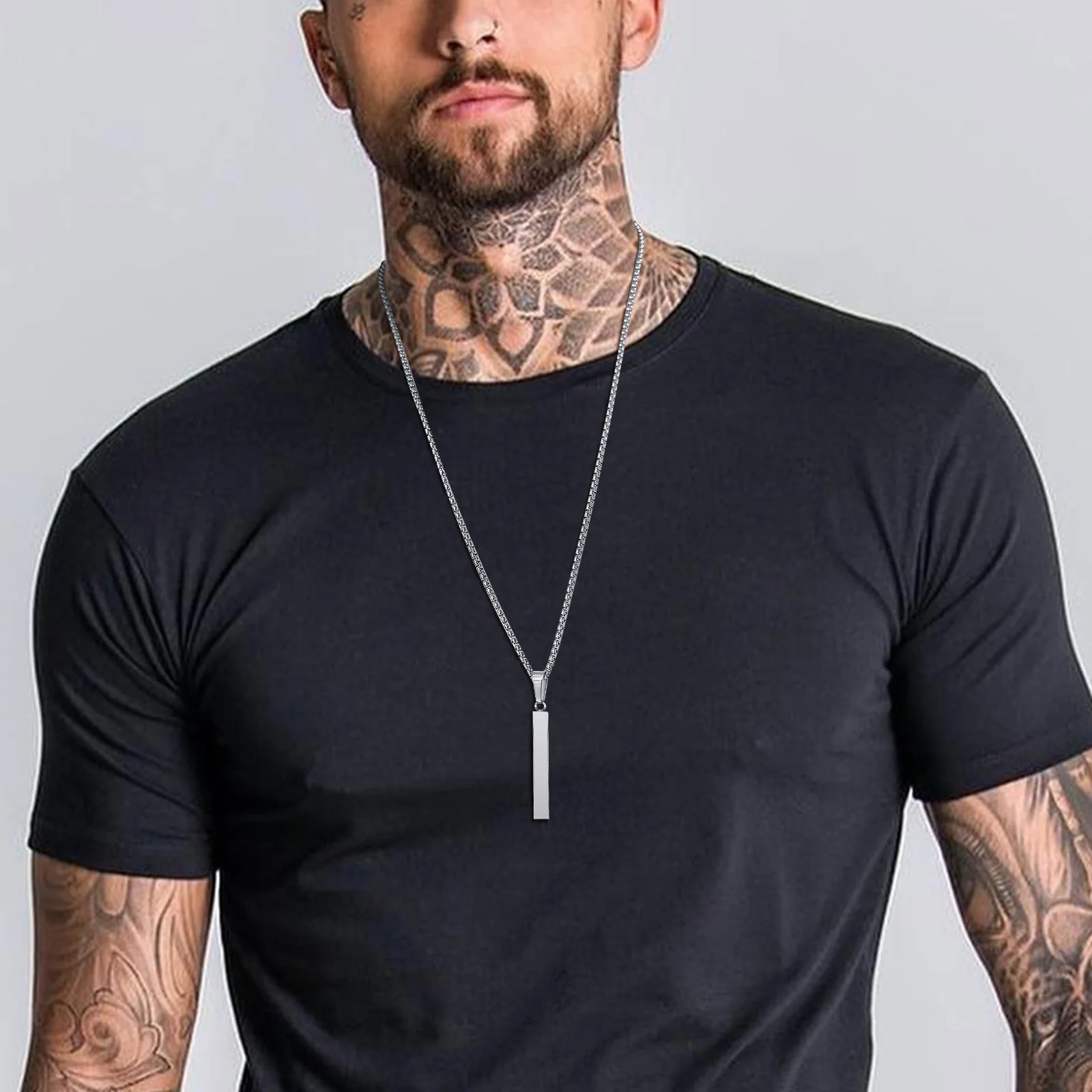 Vnox Mens Silver Color Bar Necklaces, Geometric Stainless Steel Pendant with Box Chain, Minimalst Metal Jewelry Gift for Him