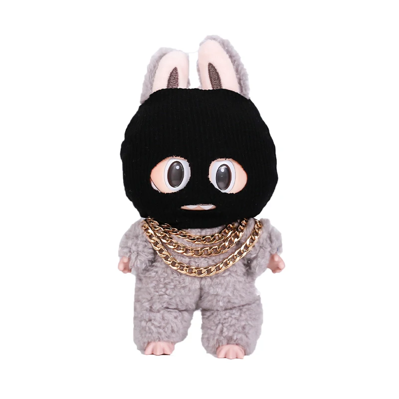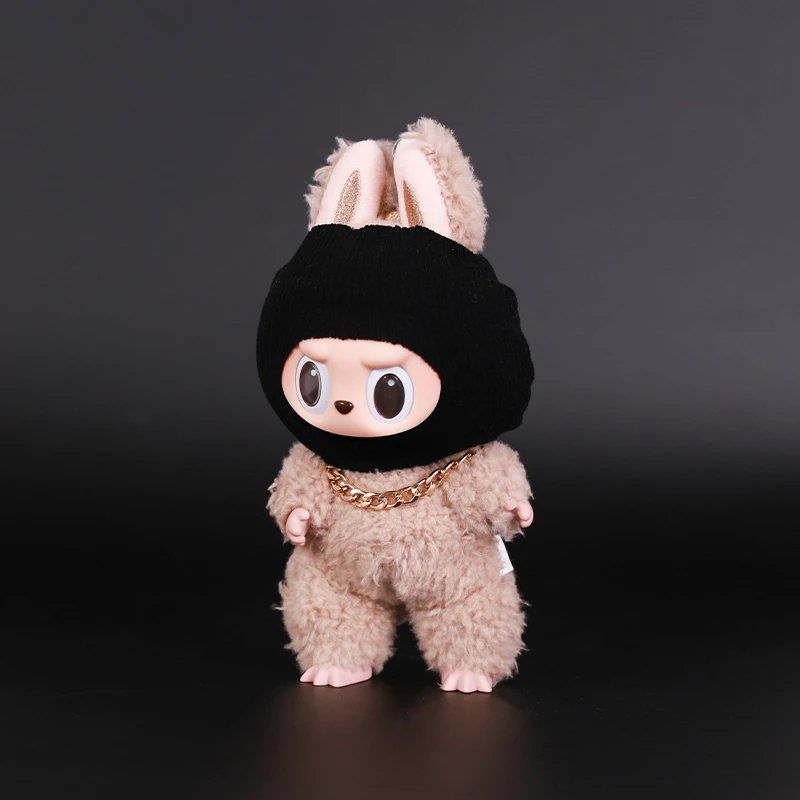 For Labubu Clothes Accessories Trendy Cool Cute Fun and Funny Style Black Knit Hat and Necklace Street Fashion Doll Accessories